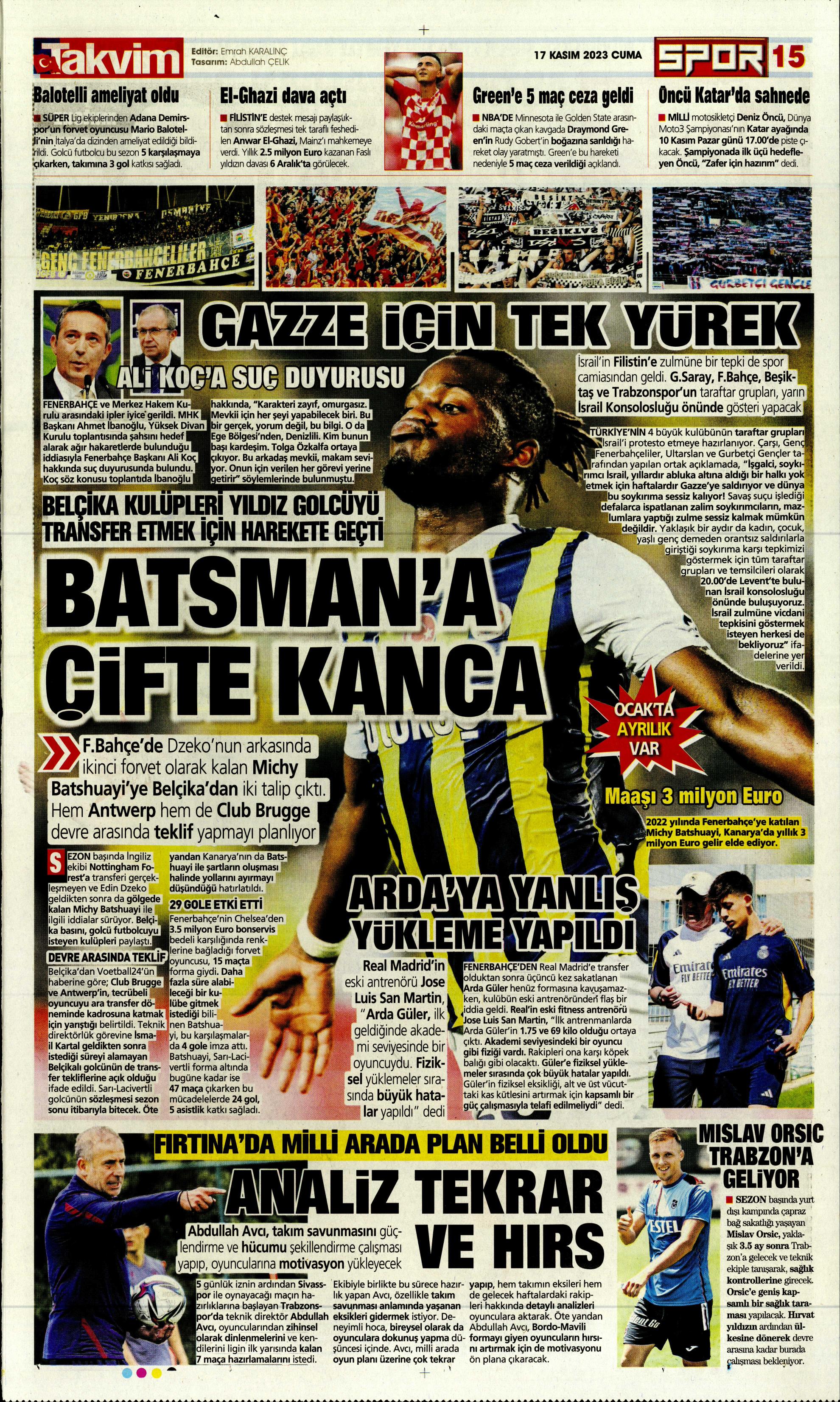 Gündem “Arda Güler, Baljic sendromu yaşıyor” | Sporun manşetleri (17 Kasım 2023) 17 Kasım 2023 Spor Arenax 0 yorum