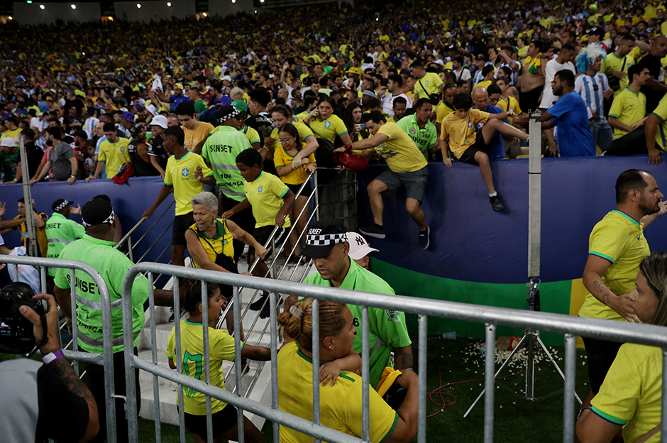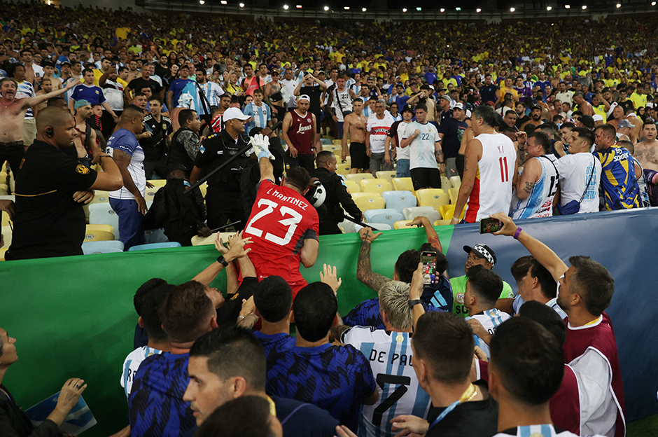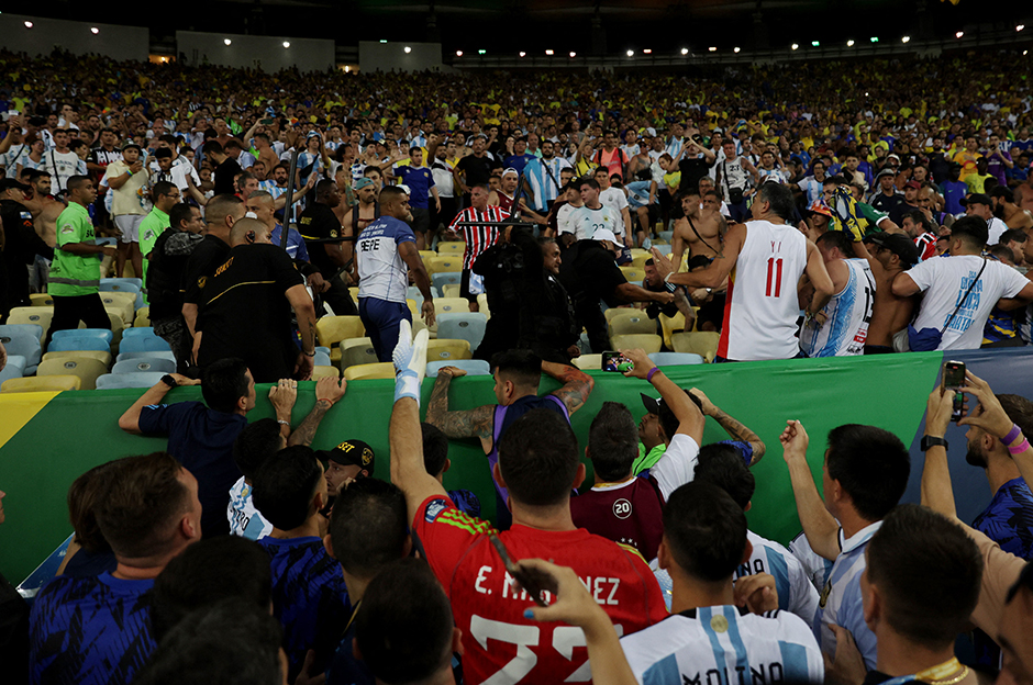 Maracana Stadı’nda oynanan Brezilya-Arjantin maçı, iki ülkeyi destekleyen taraftarların milli marşlar okunurken kavga etmeye başlaması üzerine yarım saat geç başladı.