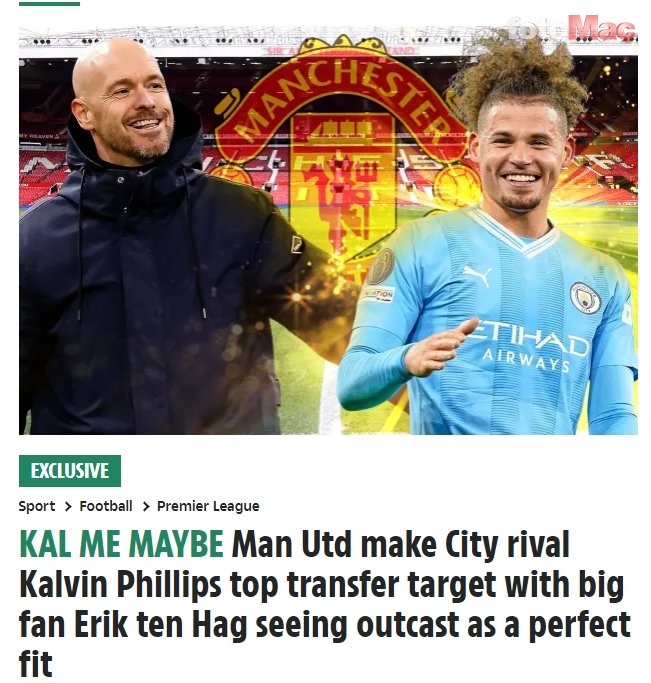 Sezon başında Fenerbahçe ile Galatasaray, Manchester City forması giyen Kalvin Phillips’i kadrosuna katmak istemişti.2 Süper Lig devinin transfer denemeleri başarısız sonuçlandı. Şimdi ise Avrupa basınından flaş bir iddia geldi.aspor.com.tr’den Mahmud Çaputlu’nun derlediği habere göre; İngiliz devi Manchester United ile İtalyan devi Juventus Kalvin Phillips’i istiyor.